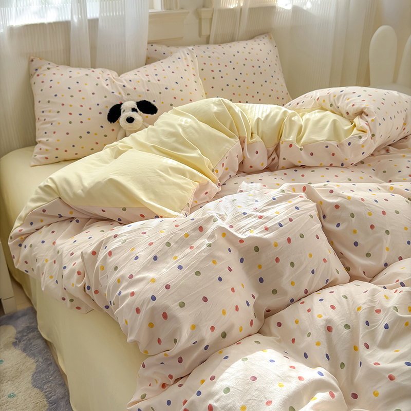 双面牛奶绒四件套彩色波点被套珊瑚绒床单宿舍床上三件套冬季床品