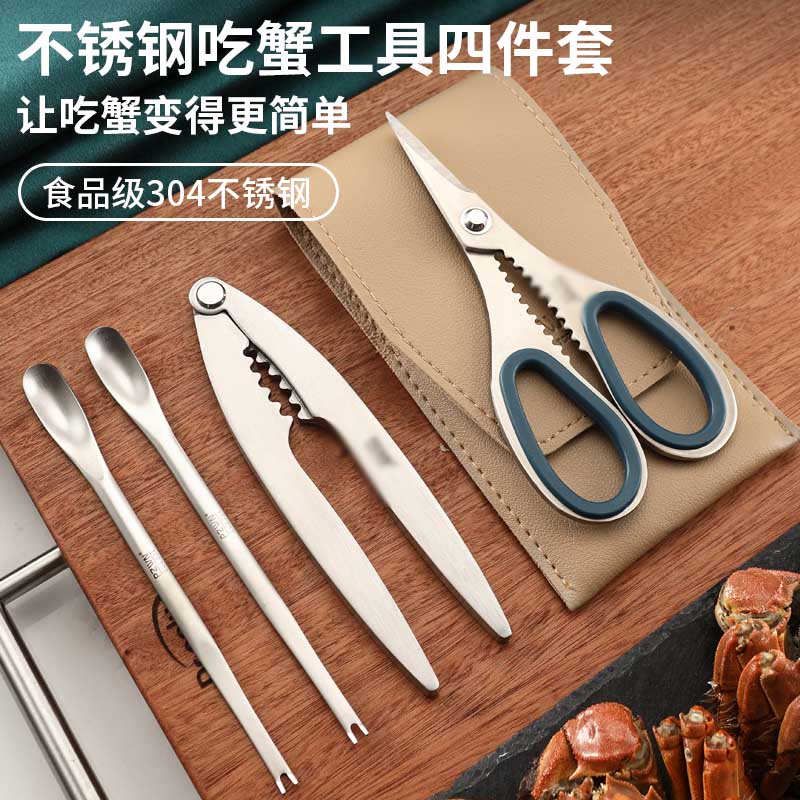 吃蟹工具蟹八件304不锈钢家用蟹剪蟹钳子夹拆大闸蟹针叉螃蟹神器