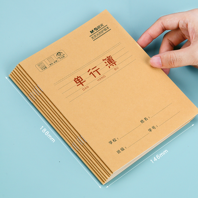 晨光牛皮纸单行本小学生用笔记本24k记事练习簿加厚语文数学英语三年级四年级五年级六年级直行作文本子批发
