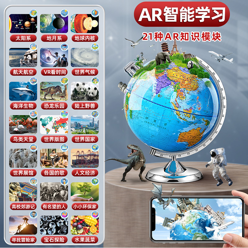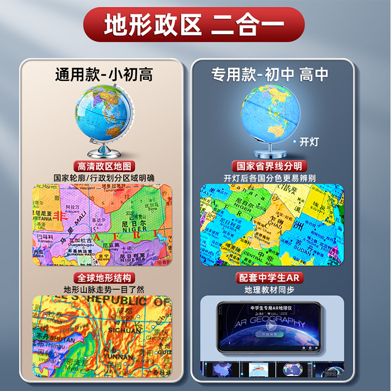 地球仪正版学生用初中生小学生专用3d立体磁悬浮ar智能大号儿童启蒙地图地形摆件高中世界官方旗舰店生日礼物
