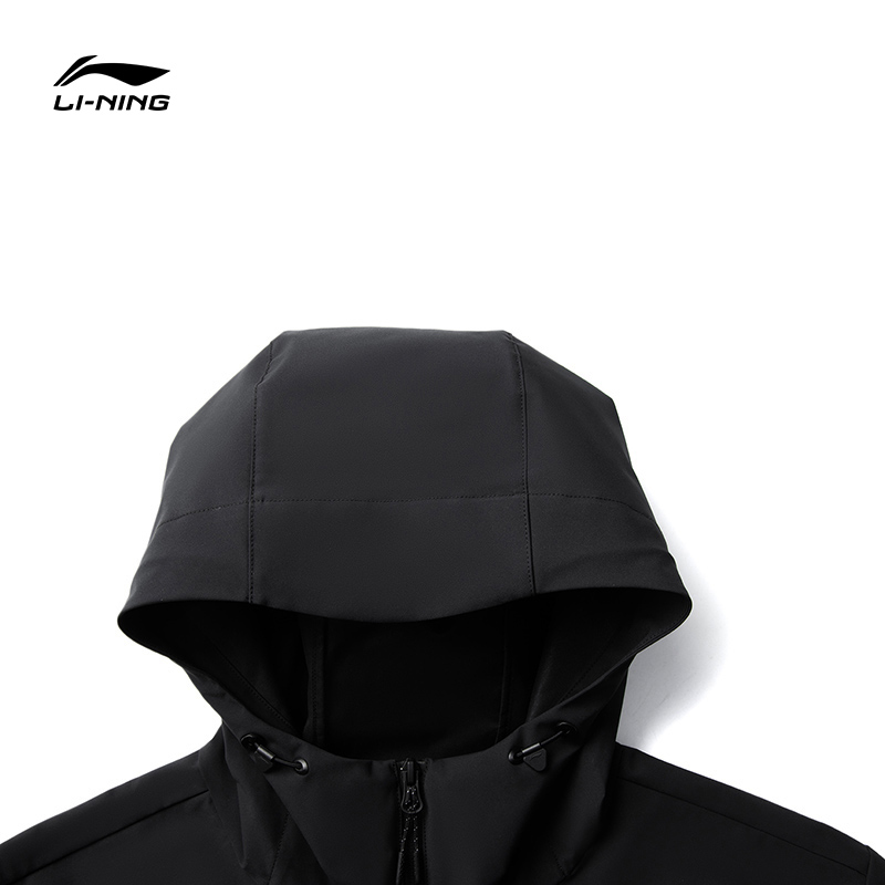李宁运动服 健身系列 男款防风透湿防泼水简约黑色运动连帽风衣