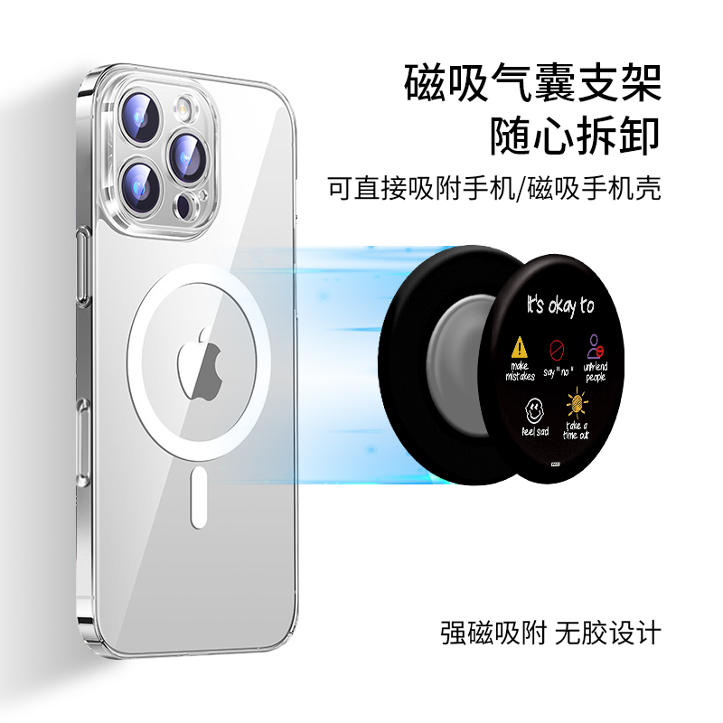 ins没关系适用Magsafe磁吸手机气囊支架iphone17苹果16伸缩折叠支架15promax磨砂14亮面13mini直播指环扣12