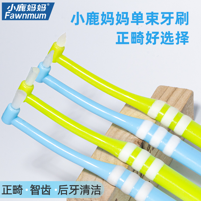 小鹿妈妈单束头矫正尖头牙刷牙缝刷用牙套智齿窝沟正畸牙缝刷 6支