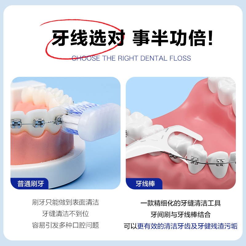 300支正畸牙线超细正畸牙线矫正钢丝清洁牙签牙线牙间刷二合一