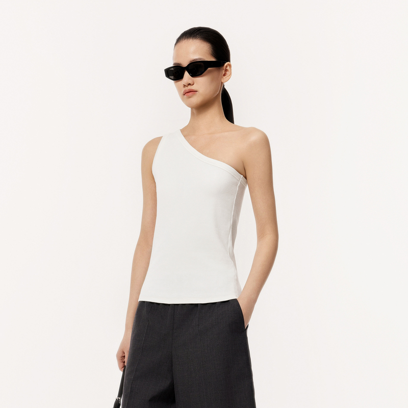 LESS春棉质斜肩剪裁解构感弹性防走光单肩带内搭小背心2O3010110