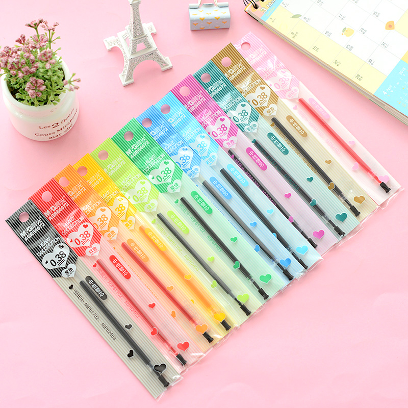 晨光彩色中性笔笔芯0.38mm全针管黑红黄橙绿棕纯蓝粉红草绿紫天蓝墨蓝色彩色水笔芯碳素学生用混合装多色替芯
