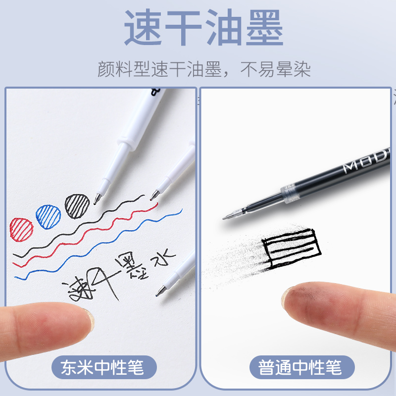 东米加强型ST头笔芯中性笔替芯大容量按动笔笔芯0.5mm黑色蓝色红色笔芯学生考试用刷题笔替换芯顺滑速干防水