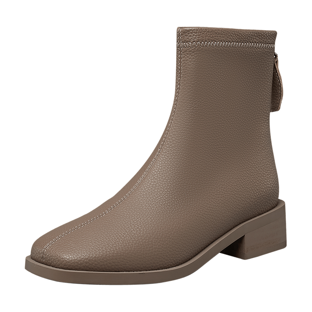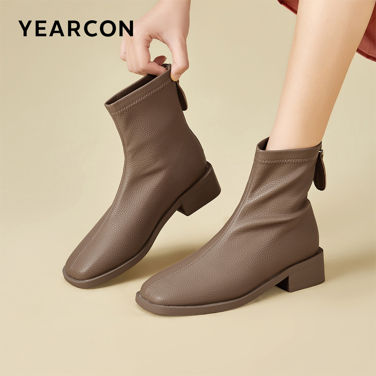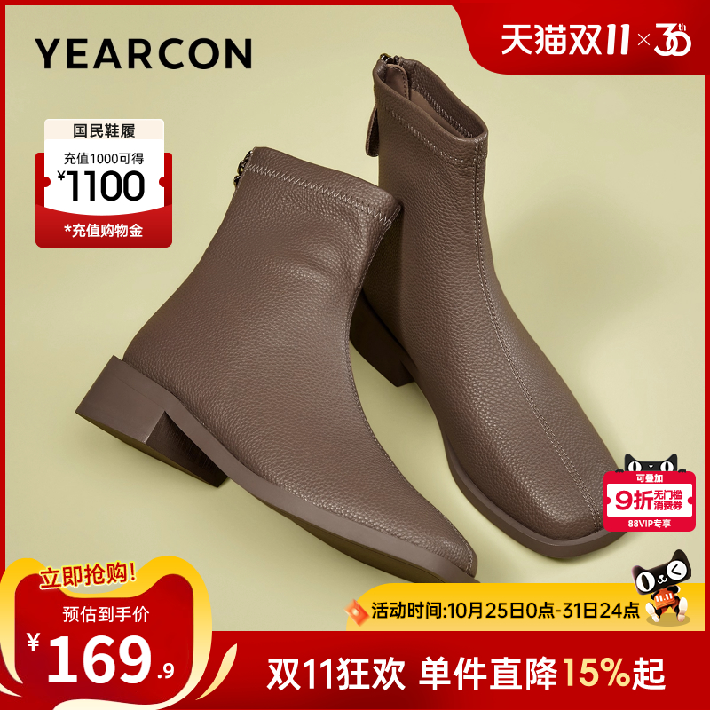 意尔康女鞋秋冬休闲短靴粗跟单靴气质英伦显瘦复古及踝靴女士皮鞋