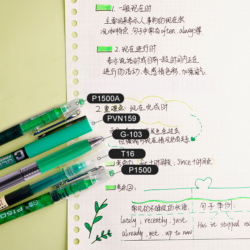 治愈系强迫症绿色走珠笔 白雪直液式走珠笔标记笔学生用记号笔彩色重点笔 套装标记笔背书神器文具
