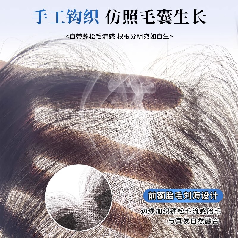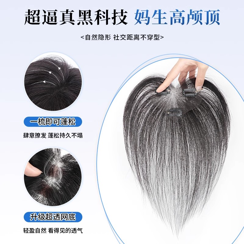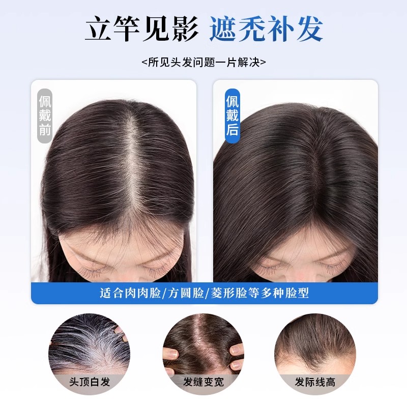 假发女片头顶真发遮白发补发蓬松高颅顶增发量轻薄无痕刘海假发片