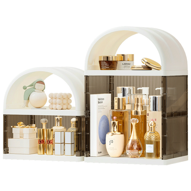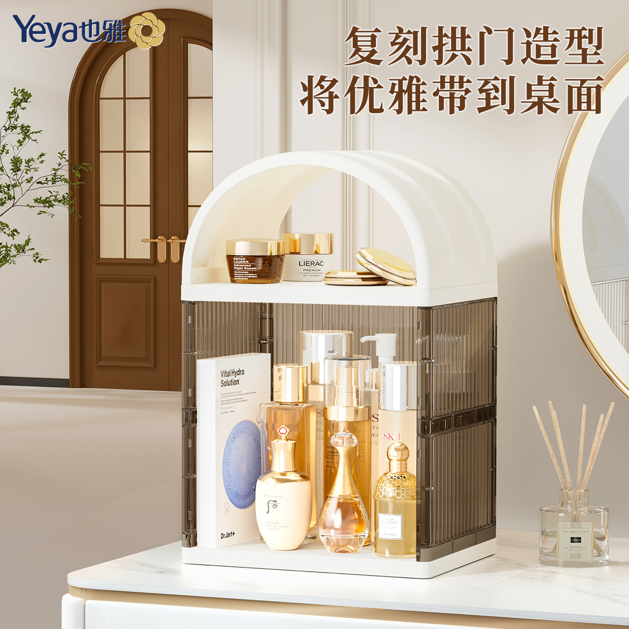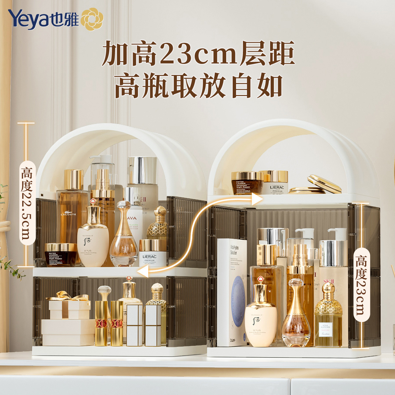 也雅大容量桌面护肤化妆品收纳盒高级感防尘pp塑料多层置物架新品