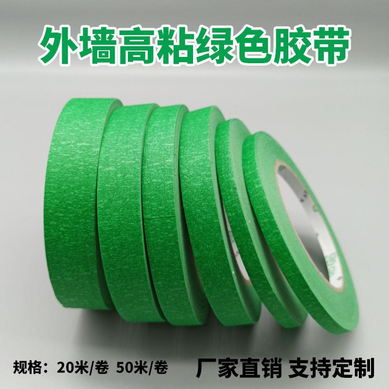 外墙高粘绿色美纹纸胶带耐高温不脱落不翘边真石漆喷砂用整箱包邮