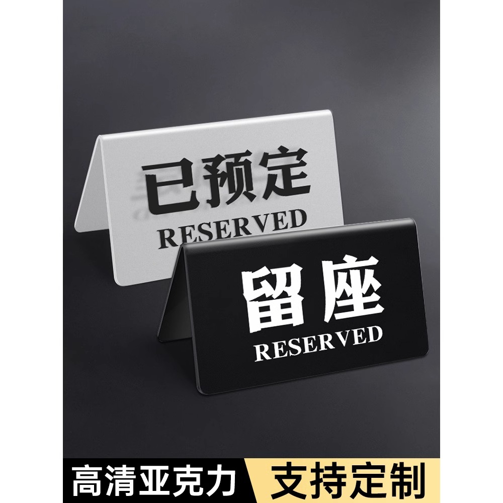 亚克力已预订桌牌留座牌立牌定制订桌订位留位订台坐留位桌号牌咖啡店网吧餐饮台卡餐厅餐桌号码桌号等位摆台