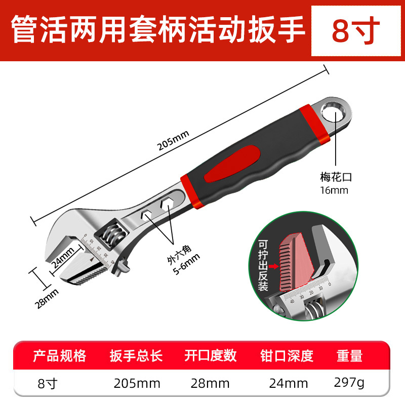 活动扳手工具卫浴活口扳手多功能大开口板子管钳水电10寸迷你12寸