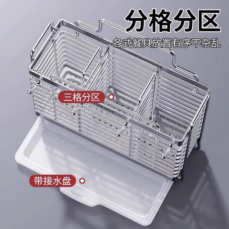 304不锈钢筷子筒家用筷子收纳盒壁挂筷子笼厨房多功能刀具置物架