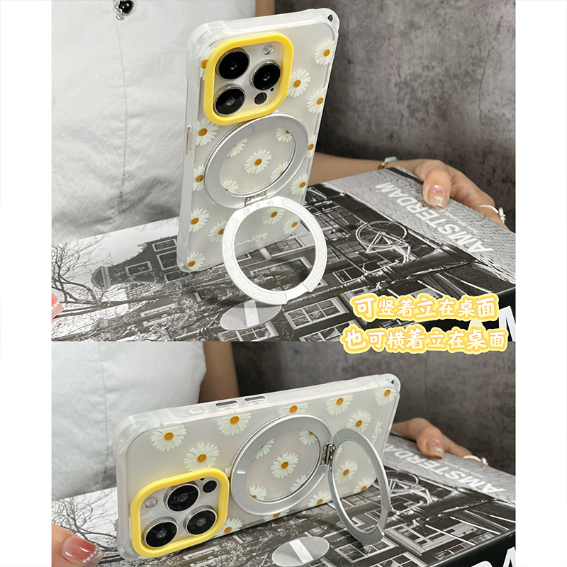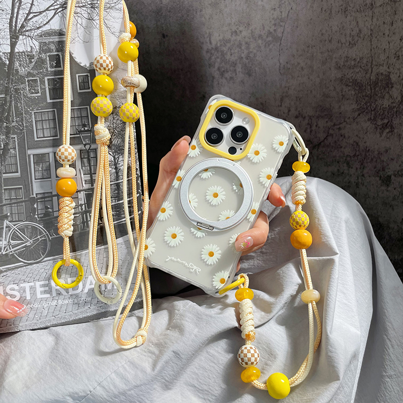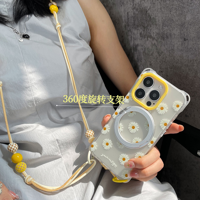 春日向阳~新款360°旋转支架雏菊适用苹果16Pro手机壳调节挂绳小米15ultra背带斜跨华为mate70链条magic7斜挎