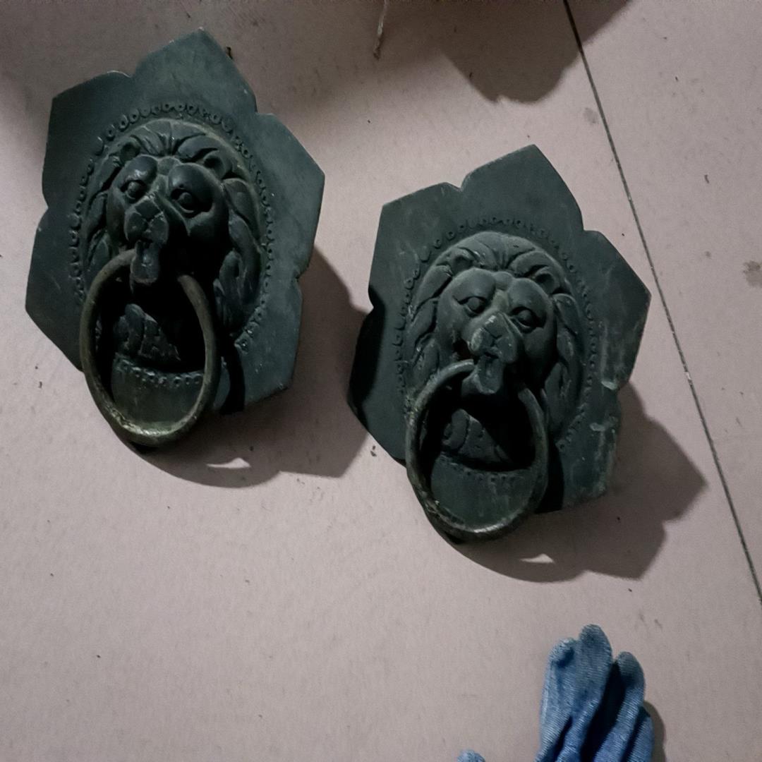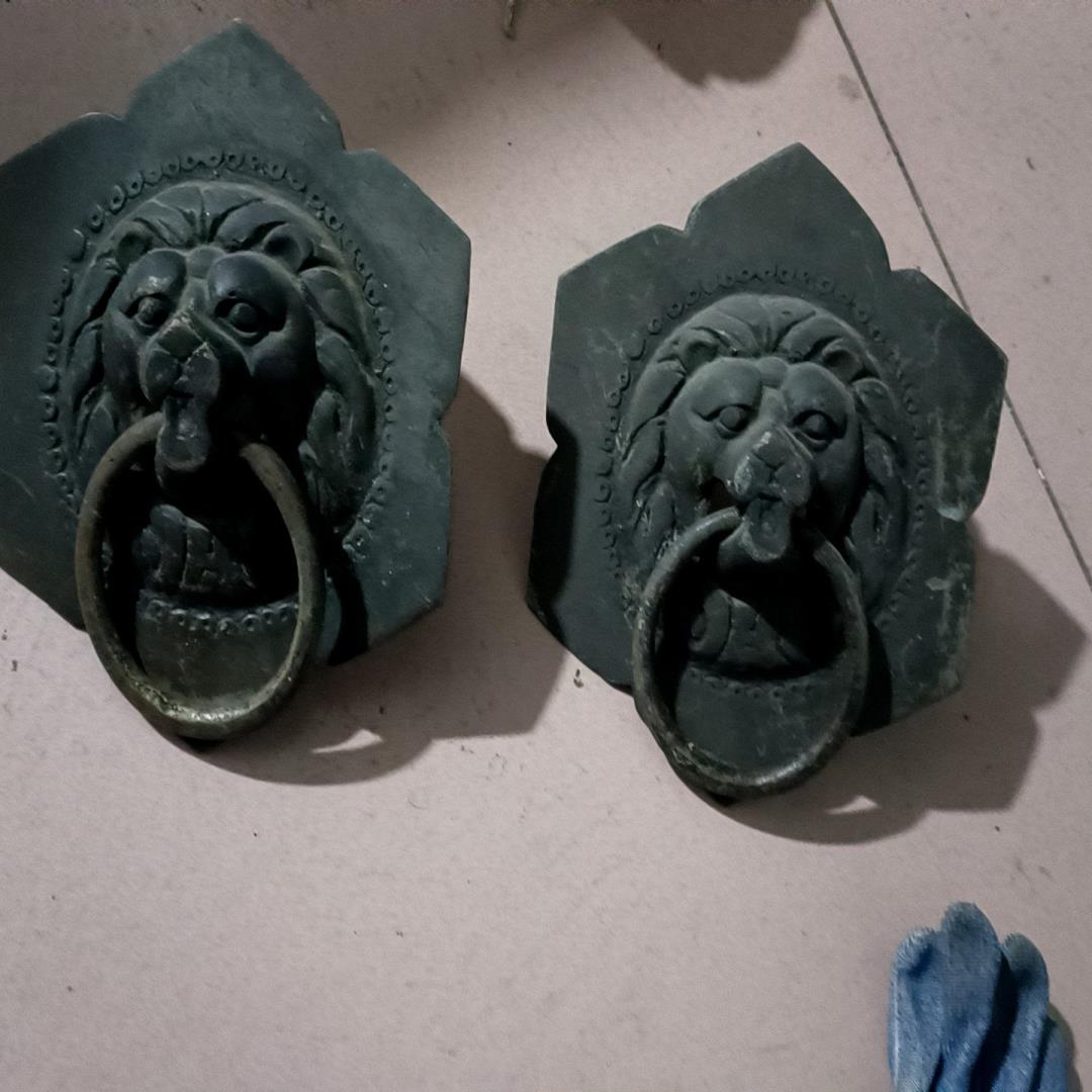 (设备配件)铜器民国时期的门扣,一对完整的铜兽首,成色如图,