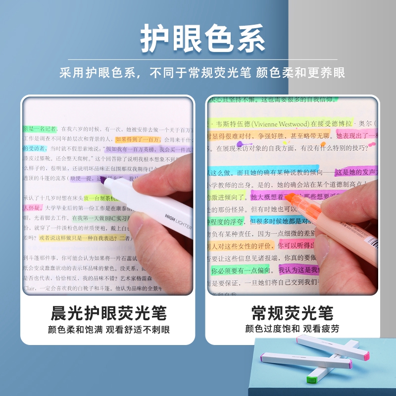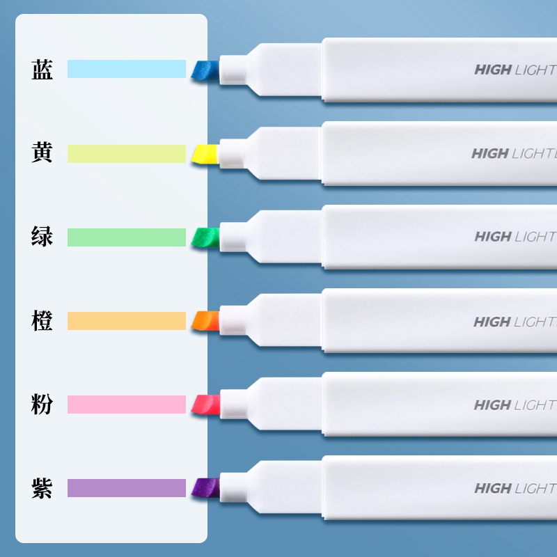 晨光荧光标记笔学生用记号笔彩色划重点做笔记专用小学生淡色护眼大容量方杆标注笔背诵神器莹光手账笔不透色