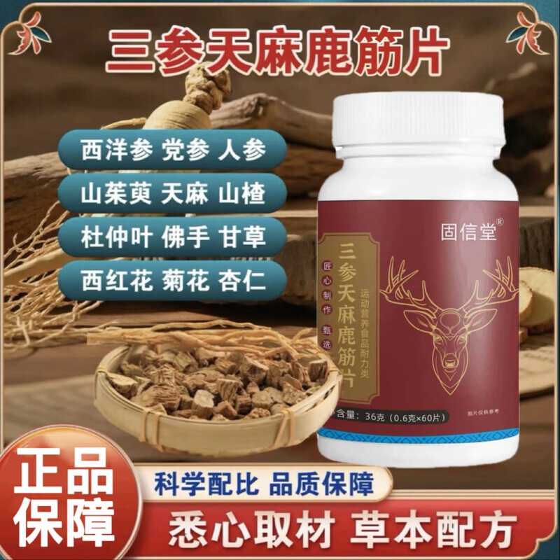 固信堂三参天麻鹿筋片草本植物萃取真材实料温和膳食营养补充剂