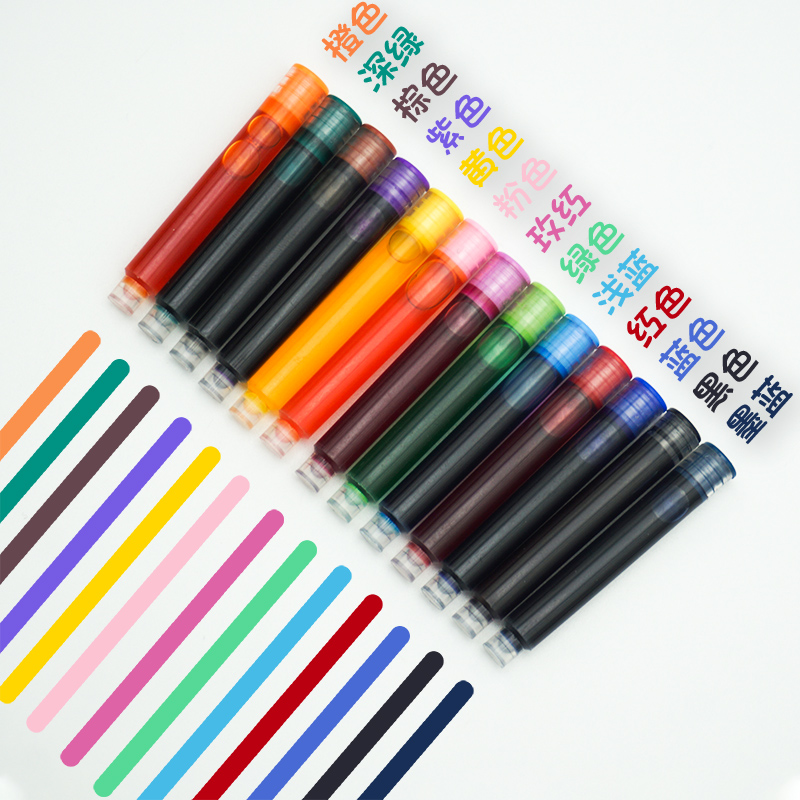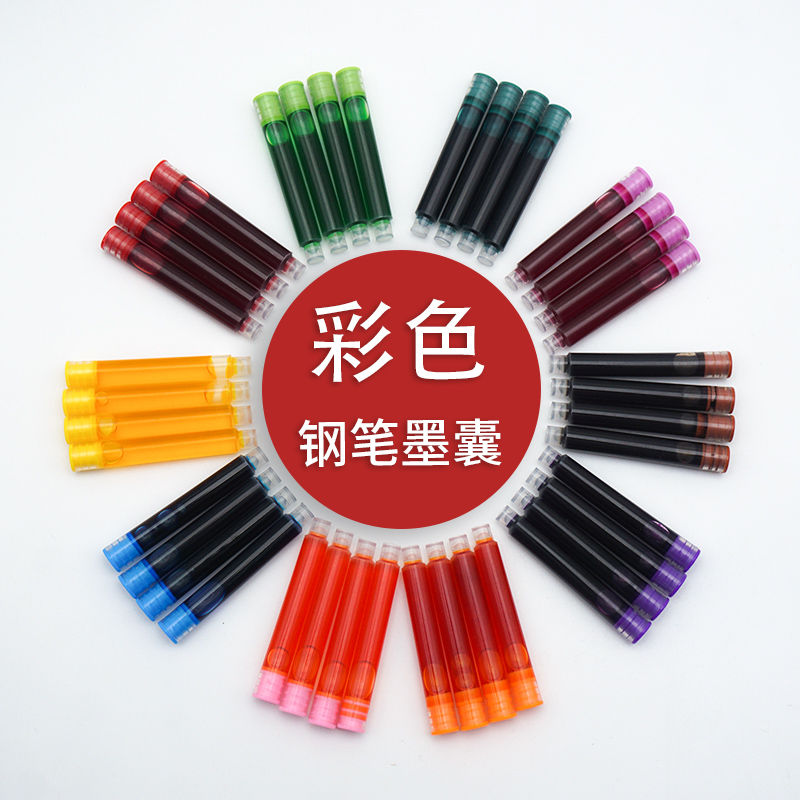 彩色墨囊钢笔画专用可替换黑橙黄绿紫红色钢笔3.4mm通用直液式墨胆学生用12色艺术签名复古色墨非碳素不堵笔