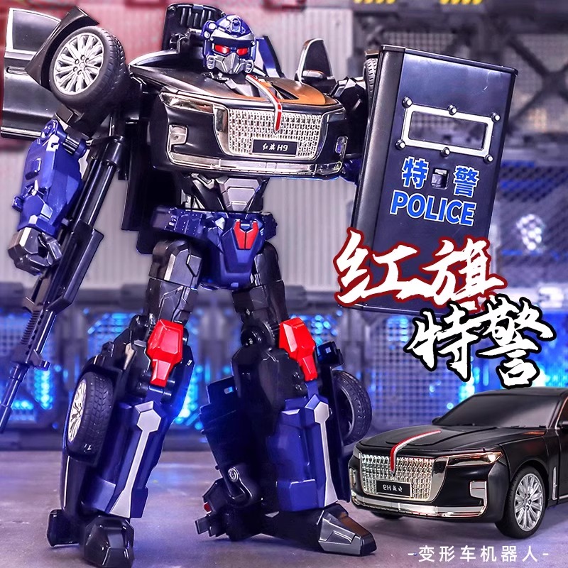 儿童变形玩具合金刚机器人汽车红旗模型机甲男童男孩5一7岁6以上