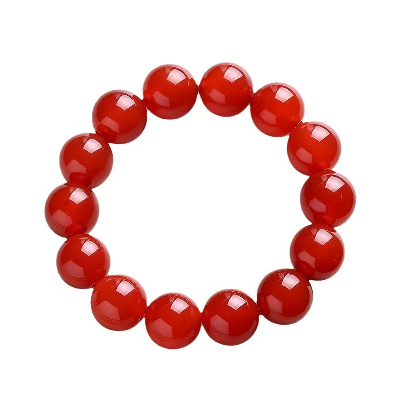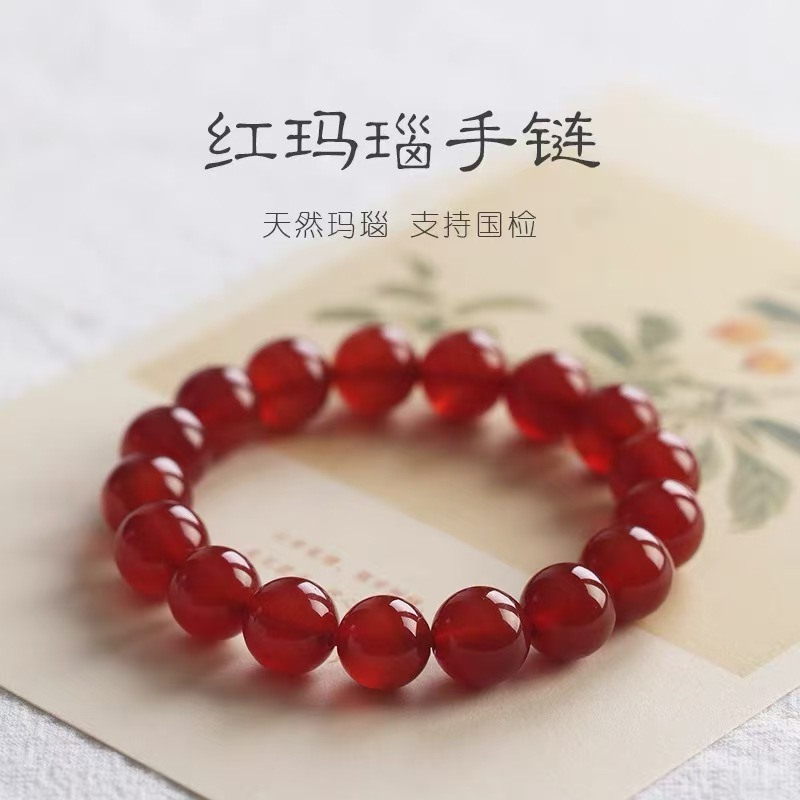 天然红玛瑙手链女珠子玉髓佛珠本命年情侣玛瑙水晶正品男手串桃花