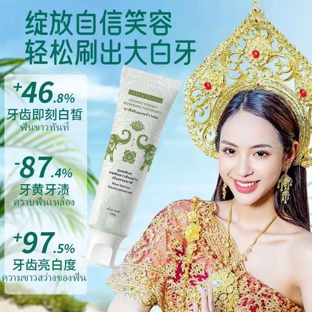 长效洁牙清新椰子牙膏清新深层清洁不含氟护龈牙膏泰国牙膏美白