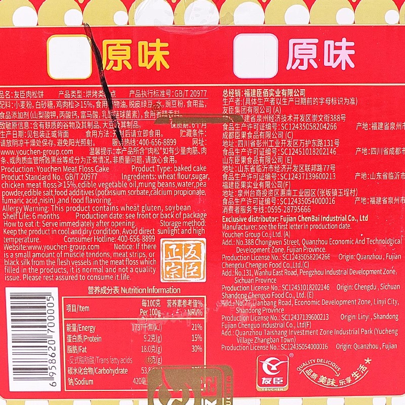 友臣肉松饼500g面包营养健康糕点心休闲小零食品饼干整箱早餐面包