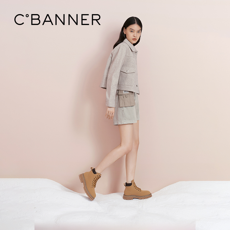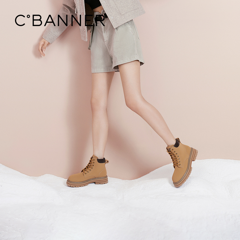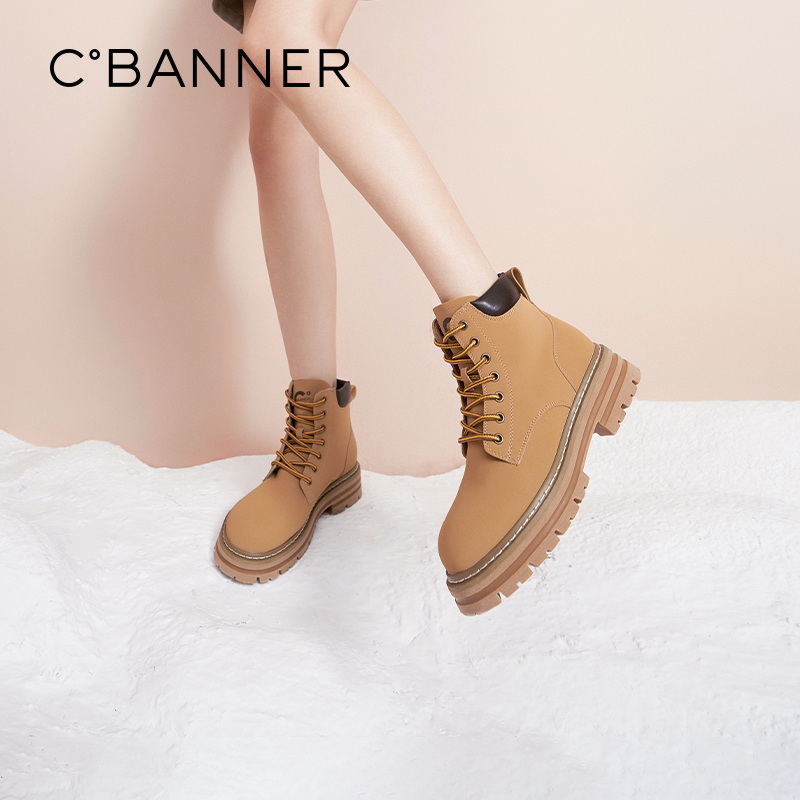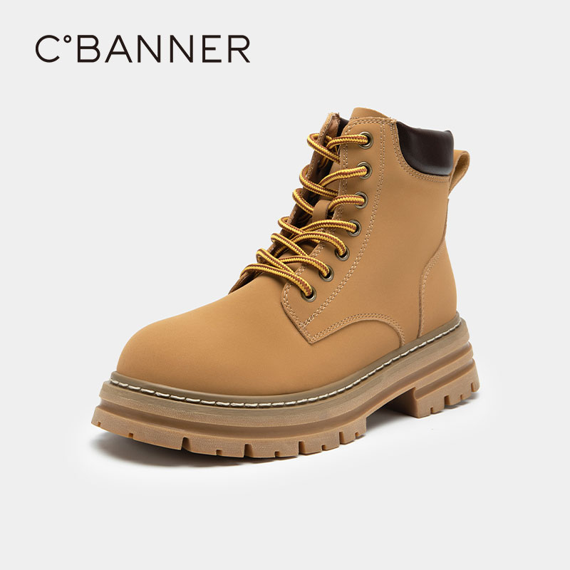 千百度女鞋秋冬工装靴潮流复古大黄靴马丁靴女款踢不烂厚底