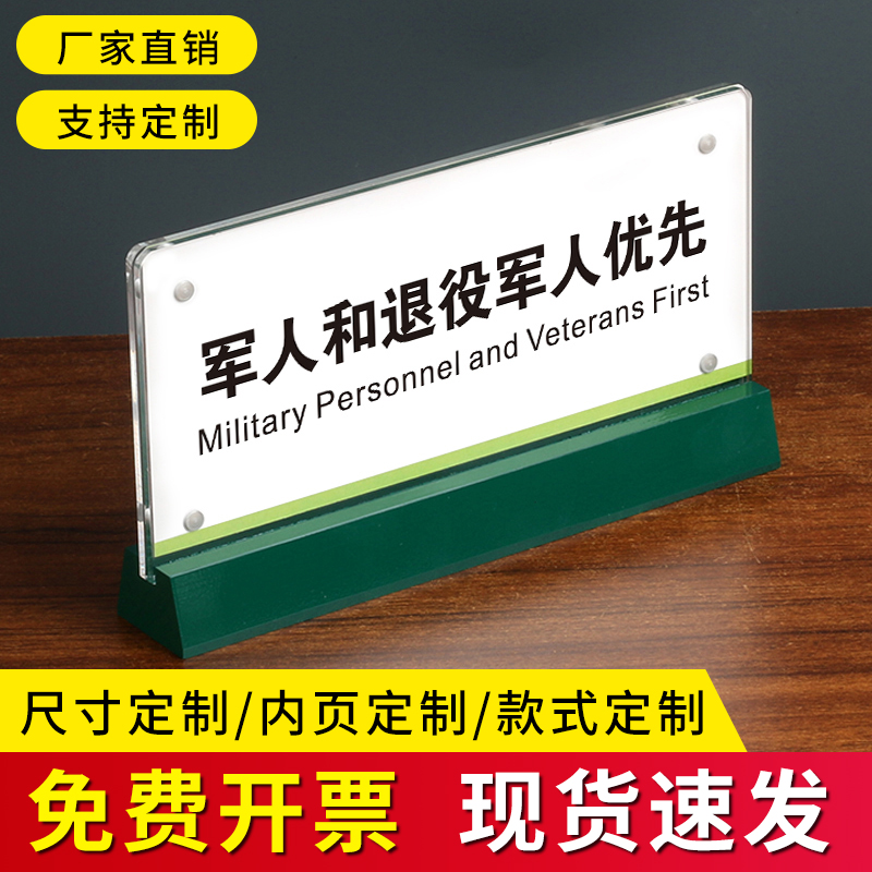 军人优先桌牌定制无障碍爱心服务窗口双面亚克力台卡邮政储蓄银行农业银行暂停服务退役军人桌牌台牌台签定做