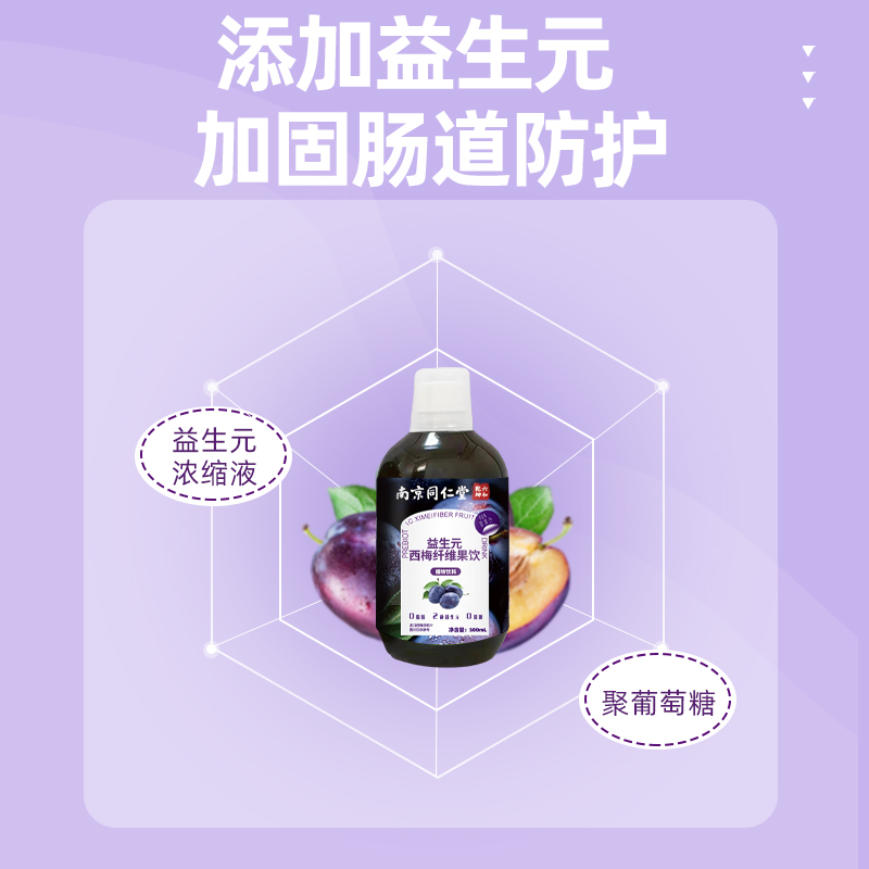 南京同仁堂西梅汁益生元高膳饮料500ml西梅饮大餐救星2种bz果汁