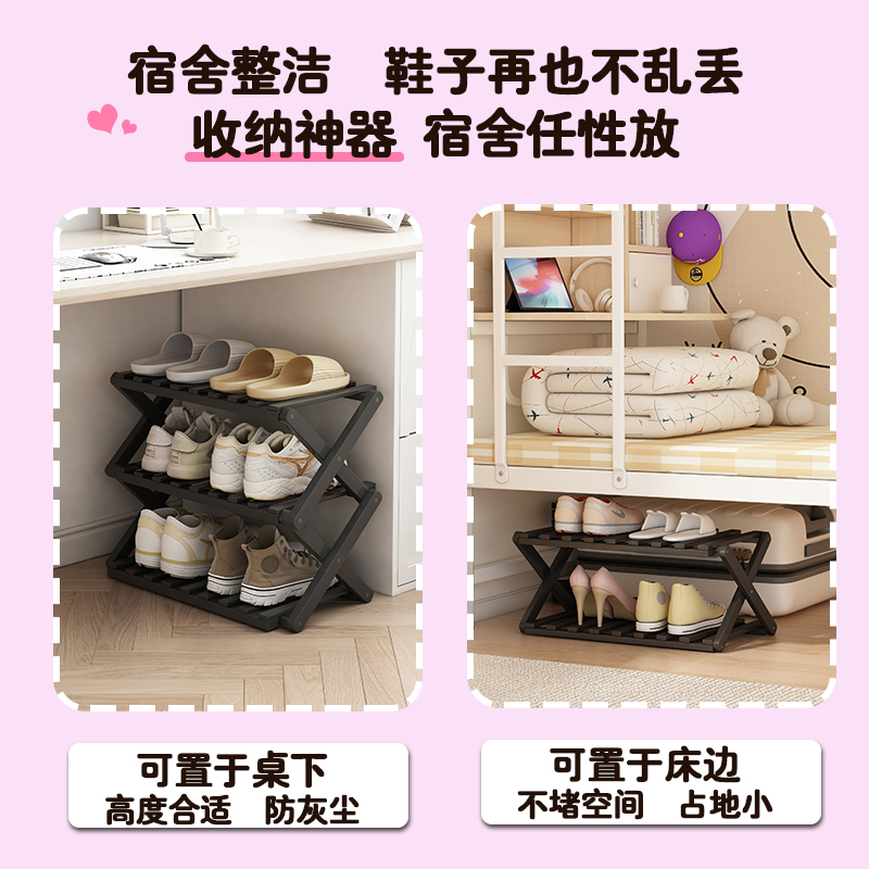 木质免安装折叠鞋架子落地置物架桌下多层鞋柜鞋子收纳架子入户门