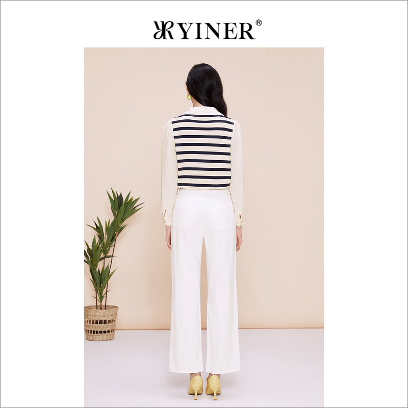 YINER音儿专选女装春季时尚高腰复古长裤直腿白色牛仔裤