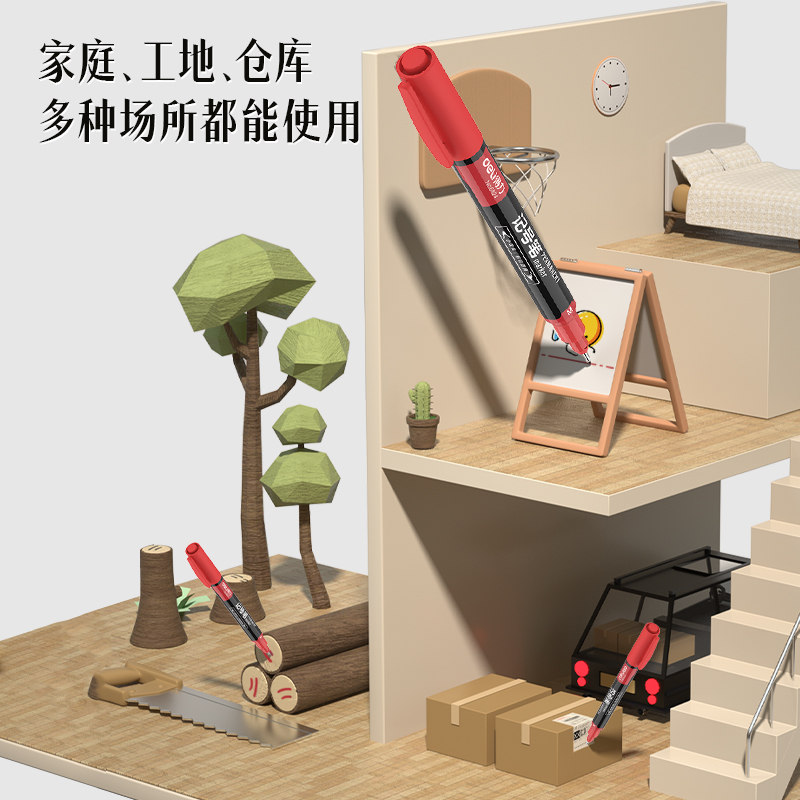 得力6824记号笔双头油性笔勾线笔海报笔海报笔速干防水细笔杆
