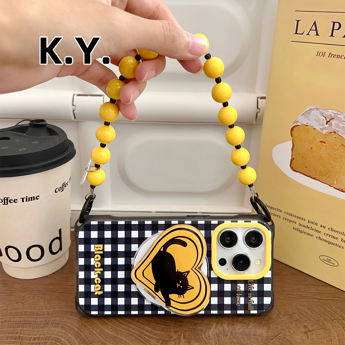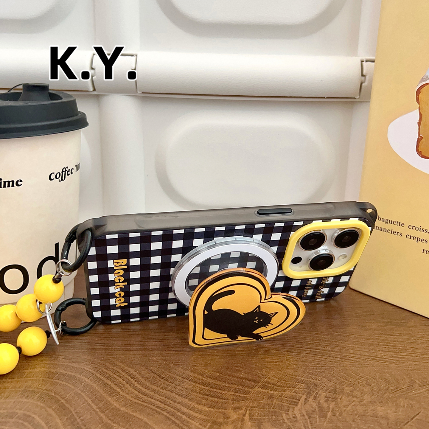 黑白格纹磁吸支架手机壳带挂绳苹果15/16华为mate60/70四角开孔小米14/15ultra防摔vivo200u斜挎背带防摔硬壳
