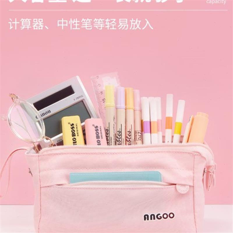 安蔻简约笔袋ins日系文具盒女孩文具大学初中新款流行中学生
