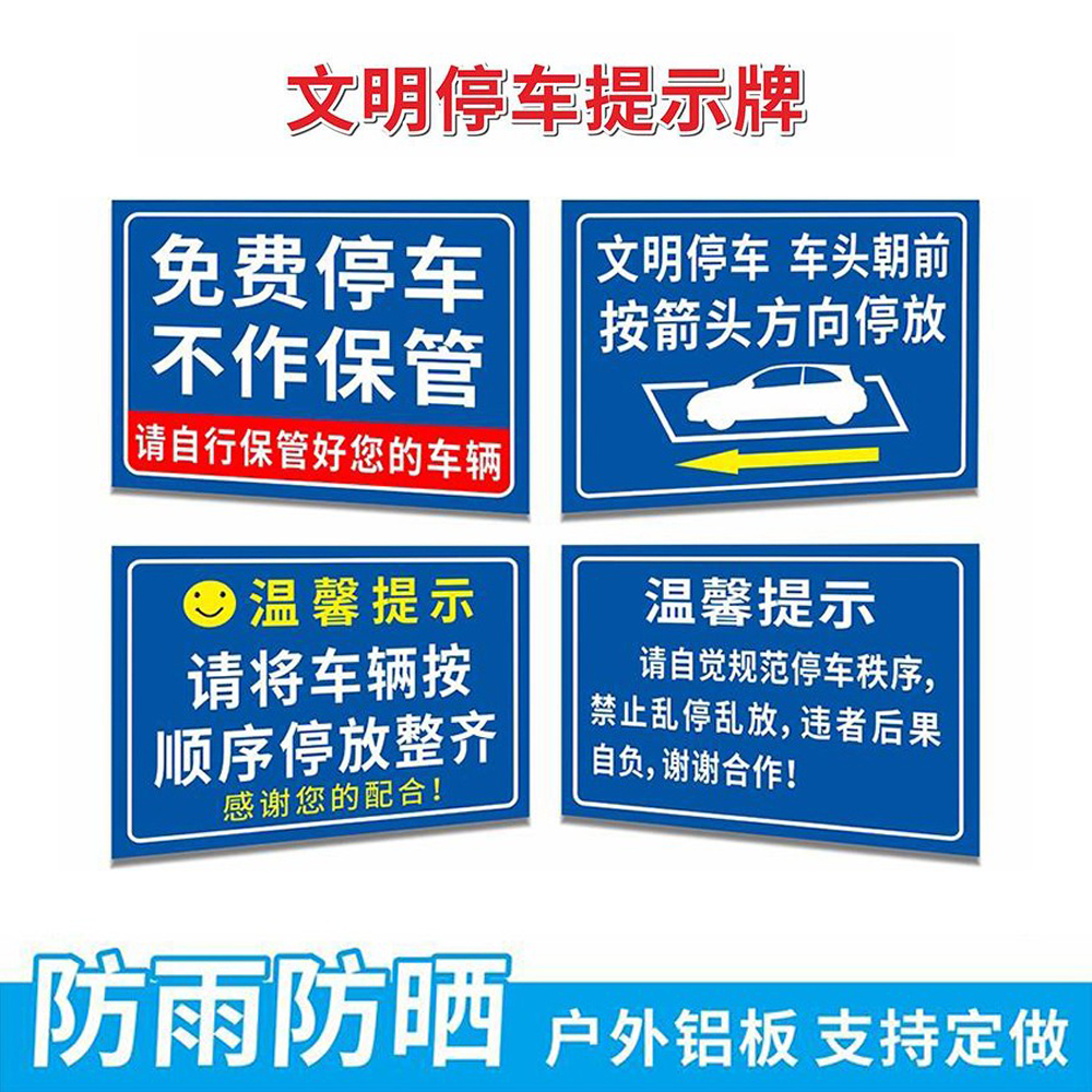 文明停车标识牌禁止乱停乱放 请将车辆按顺序停放标志牌自觉规范停车秩序提示牌 免费停车不作保管警示牌定做
