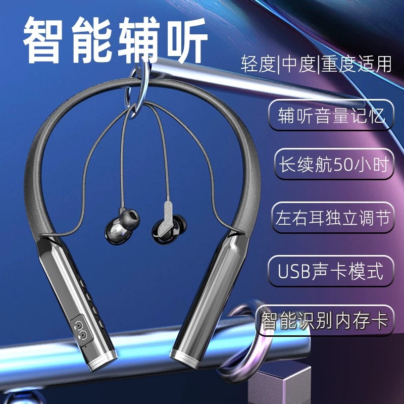 挂脖式蓝牙辅听器老人助听耳机声音放大扩音器多数字通道