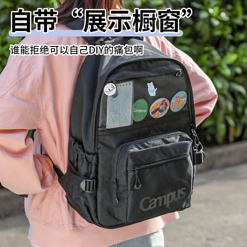 日本kokuyo国誉Campus网格绑带款书包初中女高中生大容量双肩包痛包时尚简约多功能纯色休闲背包