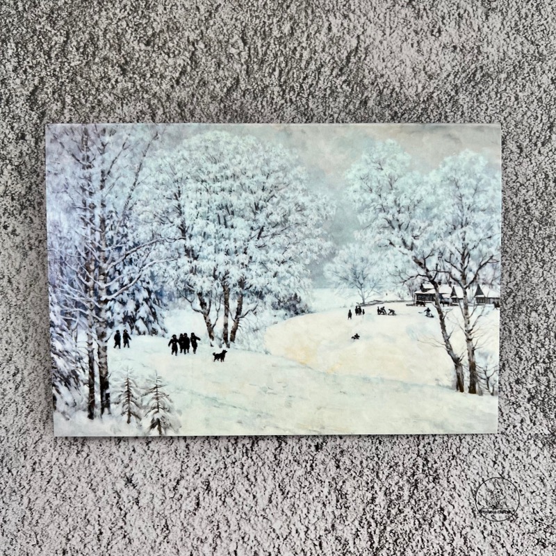 「SHUNA」俄罗斯的冬天 村庄与回家的人们 德国原版名画贺卡
