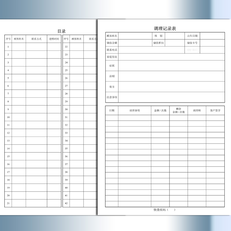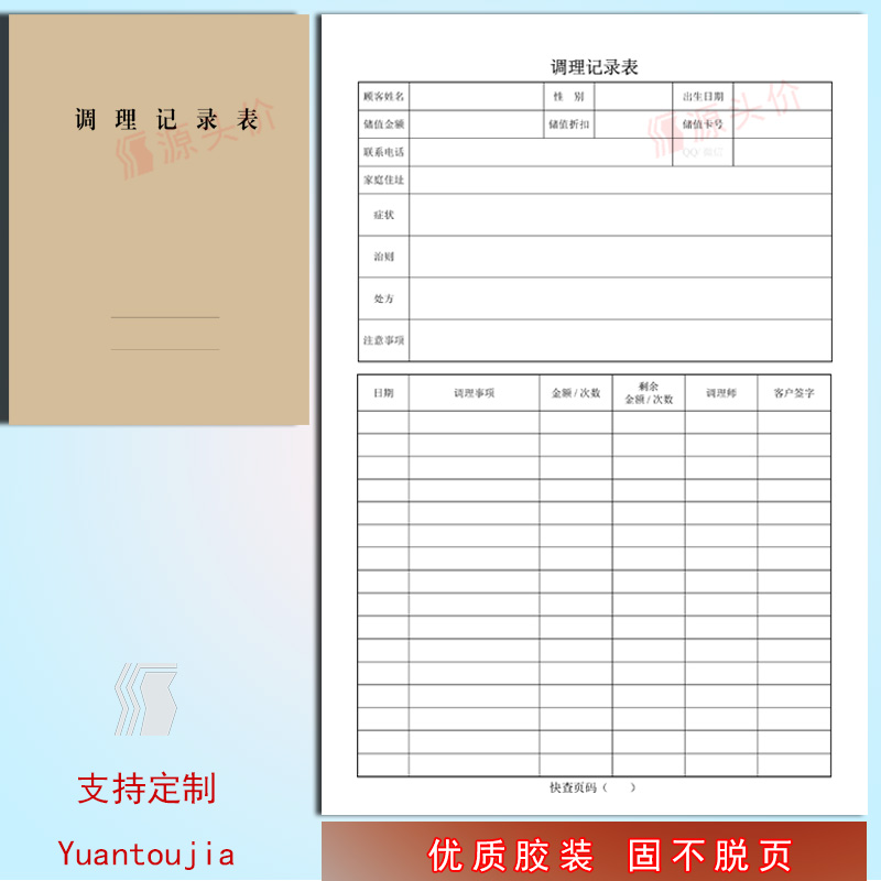 调理记录表身体档案顾客户资料本登记健康症状处方注意事项美容