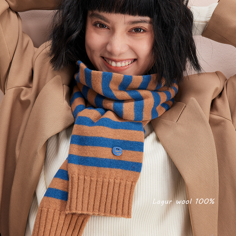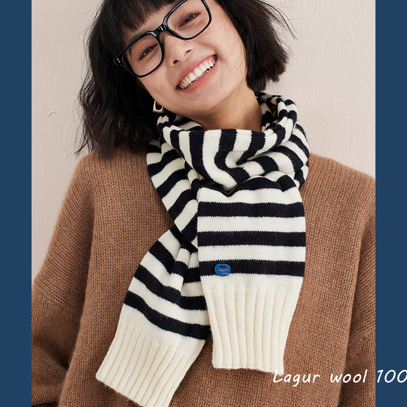 澳洲臻选丨减龄文艺100%羊毛围巾女冬加厚保暖百搭条纹针织小围脖