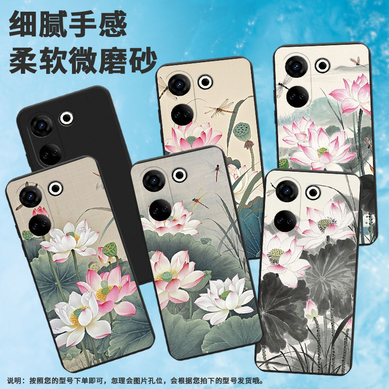 适用传音TecnoCamon20Premier时手机壳全包边Camon20Pro磨砂壳水墨荷花TecnoCamon20尚CK9n简约保护套