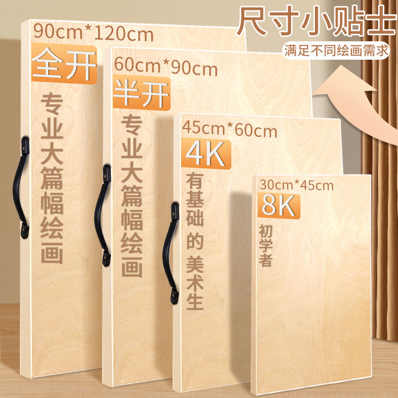 画板美术生专用4K素描板实心8K空心写生画画木板2K手提实木绘图板