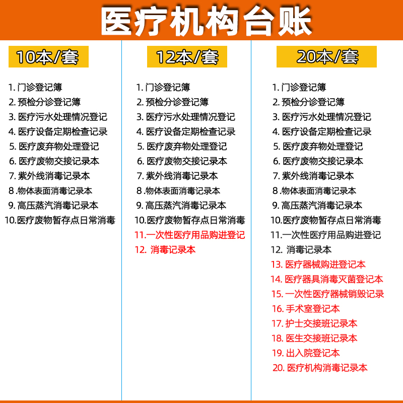医疗机构台账本门诊医院医疗机构消毒记录本一次性医疗器械销毁登记医疗废物暂存点日常消毒记录簿紫外线消毒