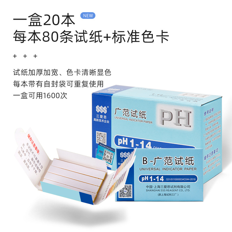 正品上海三爱思ph试纸 ph广泛试纸1-14酸碱度测试纸 一盒20本包邮