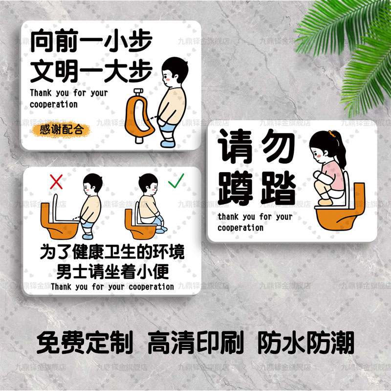 洗手间标识牌卫生间标志牌请男生坐着尿尿提示牌请勿蹲踏坐着小便男女厕所温馨提示牌定制亚克力文明标语墙贴