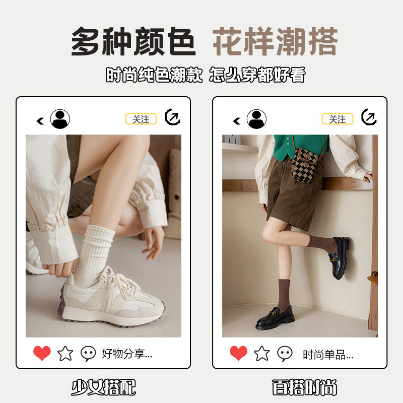 袜子女春秋季吸汗纯棉中筒奶茶袜子春秋全棉袜新款白色精梳棉黑色