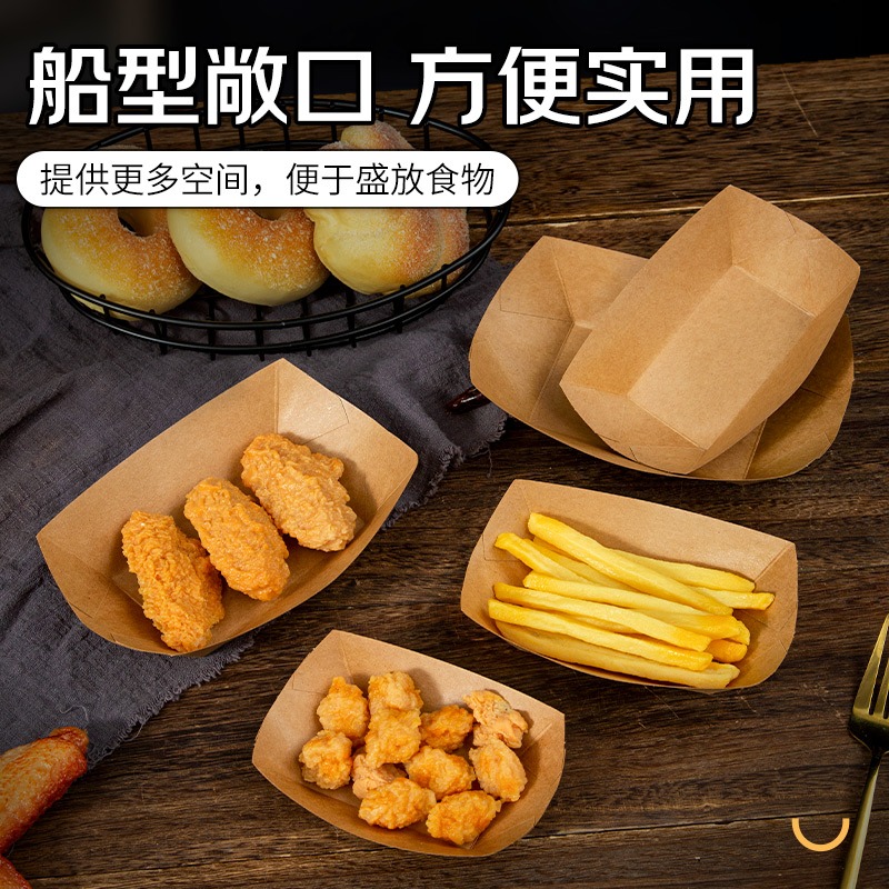 牛皮纸船盒打包盒商用摆摊炸鸡托盘鸡米花小吃薯条炸串烧烤船型盒