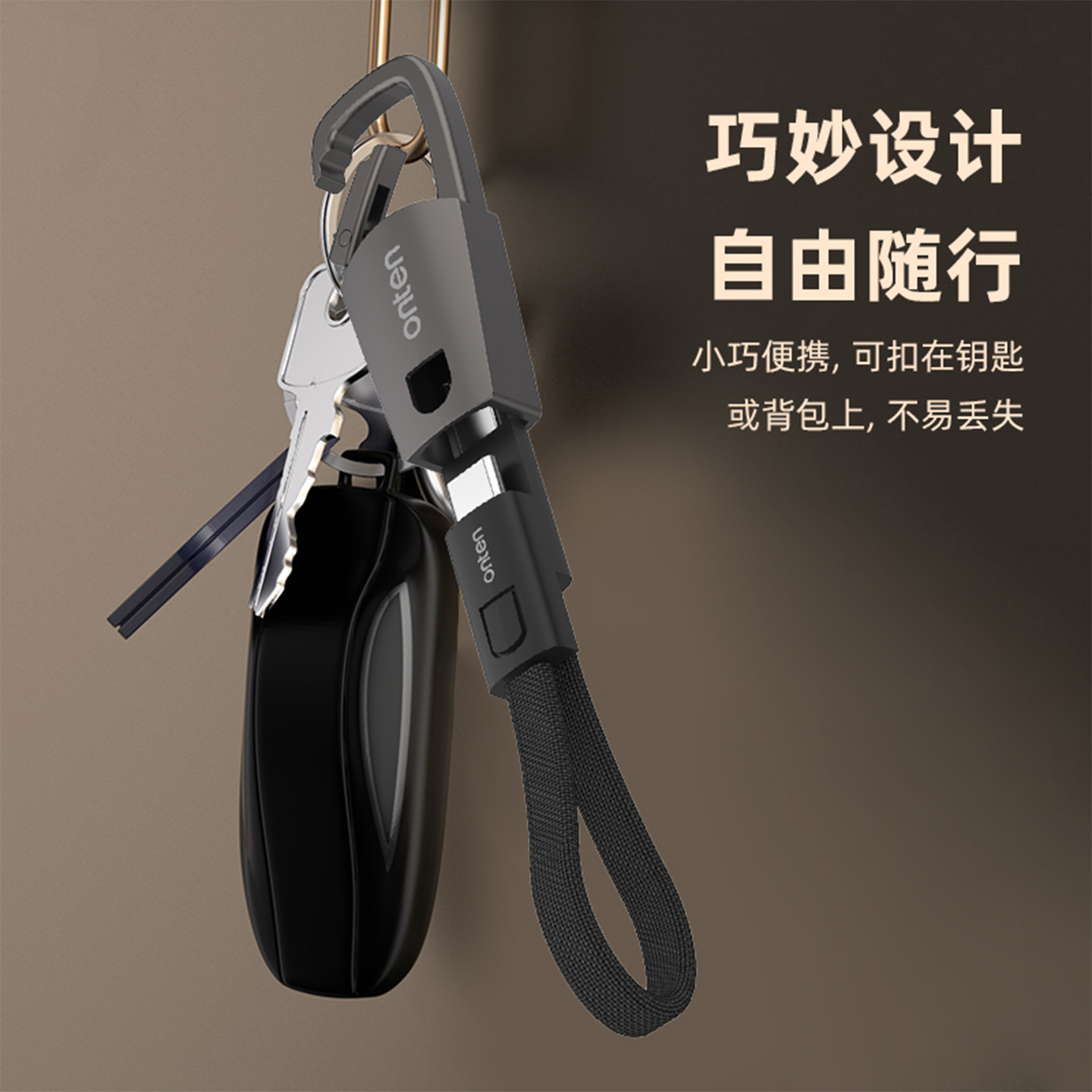 Type-C公对公便携式钥匙扣充电宝短线0.2米手机USB数据线挂绳防丢收纳移动电源充电器线适用于小米华为苹果16